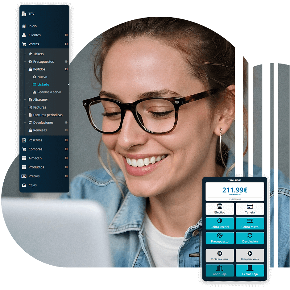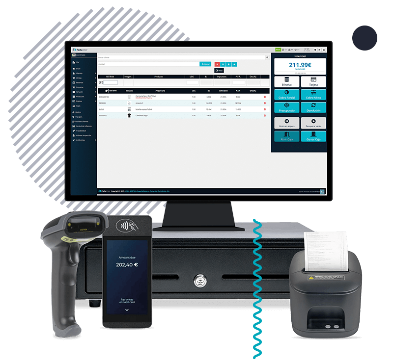 Tickets de venta, tickets regalo, integración con VeriFactu (poner logo) descuentos, cobros mixtos, venta en espera, RFID, aperturas y cierres de caja, sincronización con datáfono y devoluciones omnicanal.